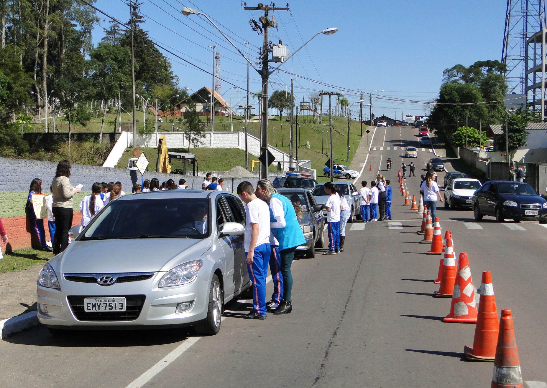 Na blitz realizada na Rua Nilo Fávaro, uma das principais vias de acesso ao município, as crianças conversaram com motoristas alertando para o uso do cinto de segurança, da cadeirinha para as crianças e sobre a importância de respeitar as leis de trânsito.