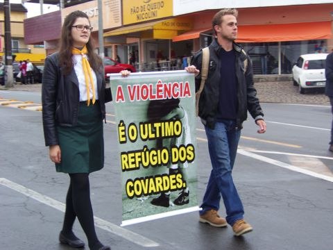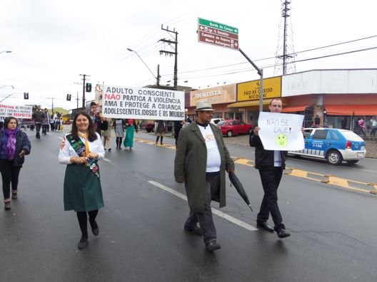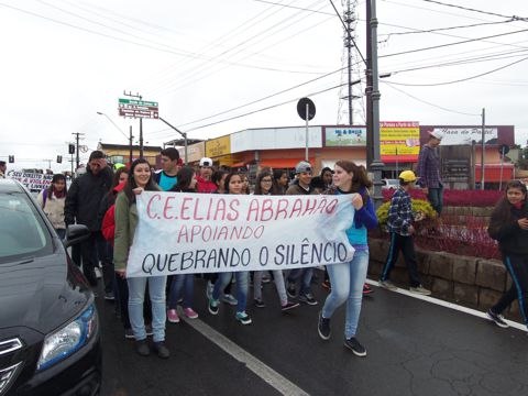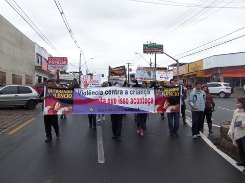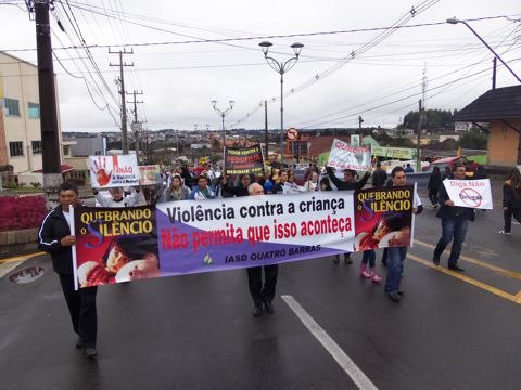 QUATRO BARRAS – Cerca de 800 pessoas participaram neste sábado, 16, em Quatro Barras da passeado Quebrando o Silêncio, um projeto educativo e de prevenção contra o abuso e a violência doméstica promovido anualmente pela Igreja Adventista do Sétimo Dia em oito países da América do Sul. Os voluntários percorrem as principais ruas do centro da cidade exibindo cartazes, faixas e distribuindo revistas e outros materiais para alertar a população. A ação teve o apoio da Prefeitura e contou com a presença de diversas entidades.