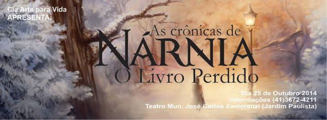 A Companhia de Teatro Arte para Vida apresenta na próxima semana o espetáculo “As Crônicas de Nárnia – O Livro Perdido”, com base na obra de C. S. Lewis, e concepção e coreografia de Luiz Ceifar. A agenda de apresentações inicia nos dias 23 e 24 de outubro, para um público de 1.200 alunos das escolas municipais de Quatro Barras.