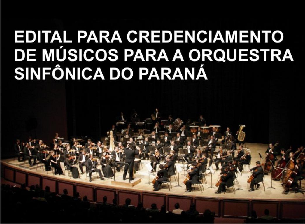 O Centro Cultural Teatro Guaíra lançou edital para credenciamento de músicos extras para a Orquestra Sinfônica do Paraná, para a programação de 2016. O período de inscrições segue até o dia 3 de março.