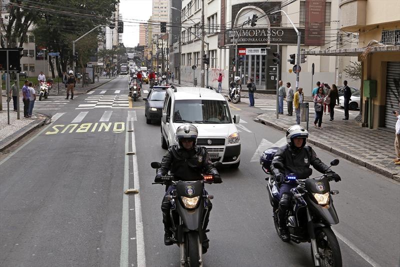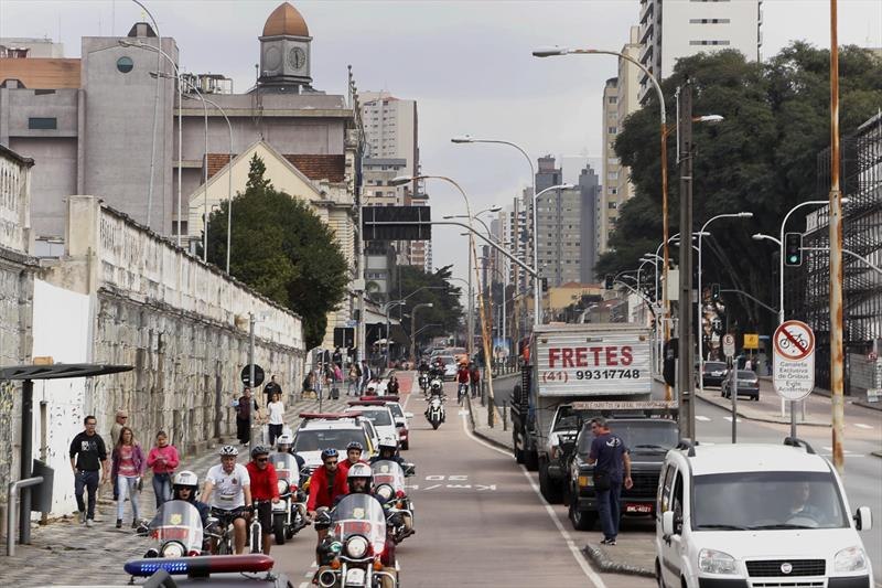 Um comboio formado por 17 veículos e escoltado por batedores em motocicletas percorreu as ruas de Curitiba durante esta quinta-feira (5). Foi a segunda simulação do roteiro da Tocha Olímpica, cuja passagem pela cidade está marcada para o dia 14 de julho. A operação envolveu 15 órgãos dos governos municipal, estadual e federal e teve o objetivo de testar o percurso por onde passará o símbolo da Olimpíada.