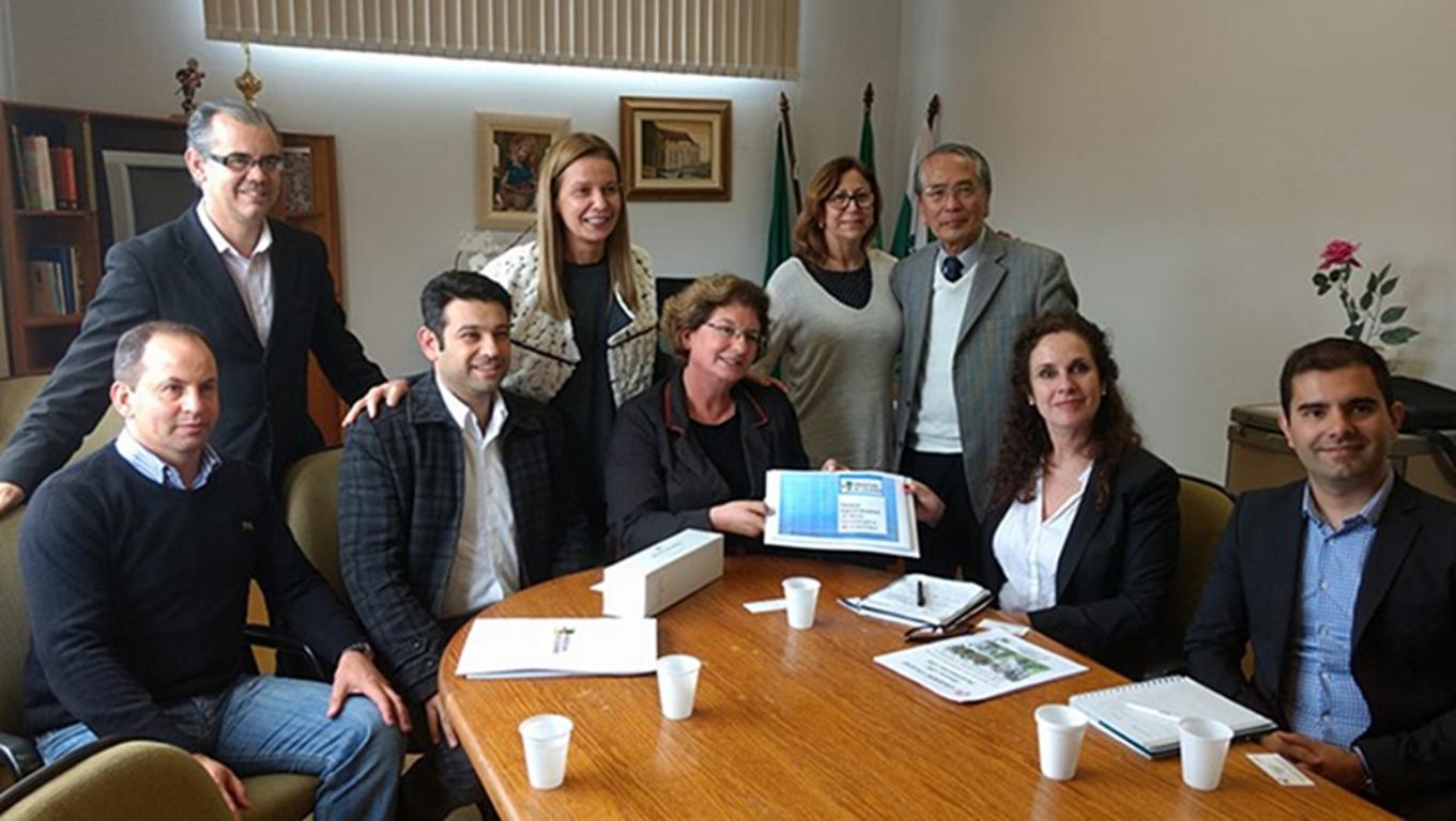 Também participaram da apresentação do projeto o secretário municipal de Agricultura e Abastecimento, Marcio Toniolo, o presidente da Câmara de Comércio e Indústria Brasil Japão do Paraná (CCIBJ-PR), Yoshiaki Oshiro, a diretora da Global Compact Cities Programme, Elizabeth Ryan e o presidente da Câmara de Vereadores de Colombo, professor Waldirlei Bueno de Oliveira. (Foto: Divulgação PMC)