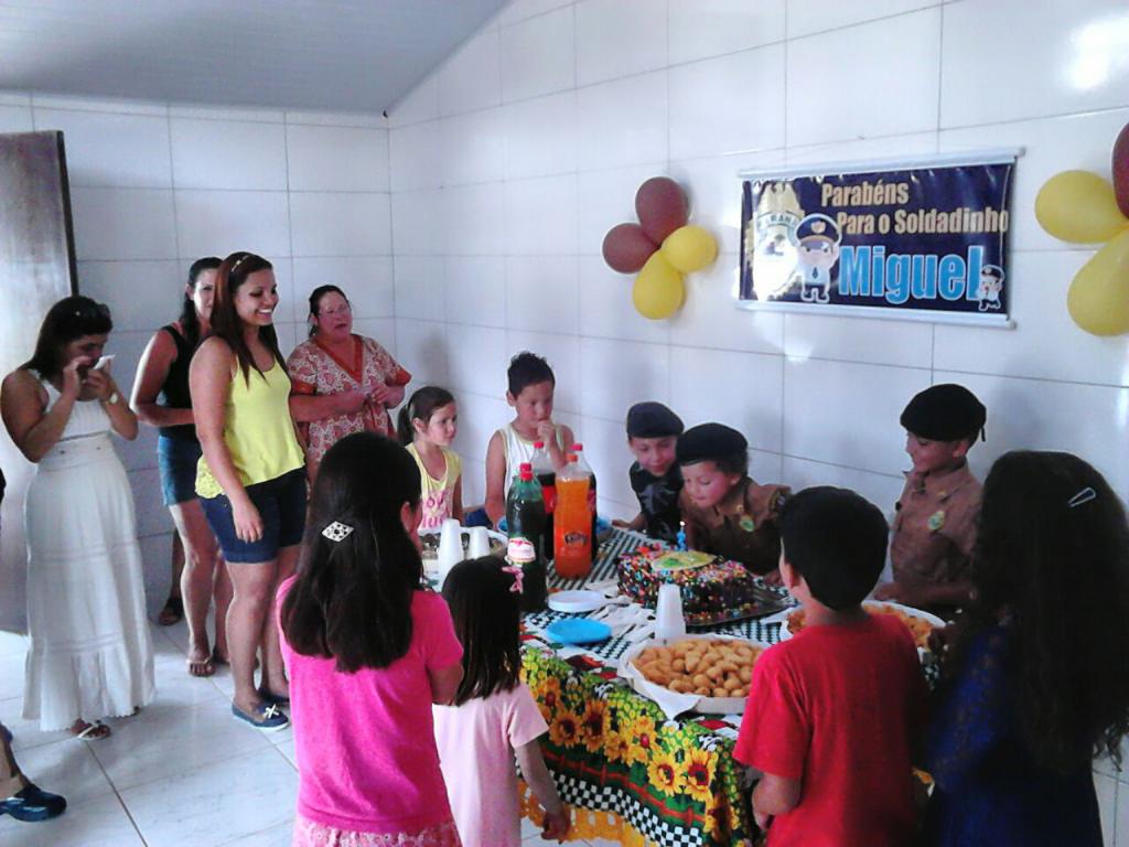 No domingo, dia 05 de fevereiro, foi comemorado o terceiro aniversário do Miguel, que realizou o seu sonho de vestir a farda e festejar junto com os policiais que tanto admira.