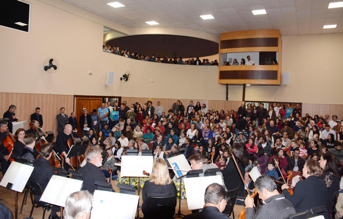 Após duas apresentações em Quatro Barras direcionadas às crianças das escolas municipais, a Orquestra Sinfônica do Paraná fechou com chave de ouro sua temporada de concertos na cidade. A última apresentação, realizada na Câmara Municipal na quinta-feira (30), registrou recorde de público: além de todas as cadeiras ocupadas, haviam espectadores pelos corredores, laterais e no mezanino que oferece uma vista do alto do plenário.