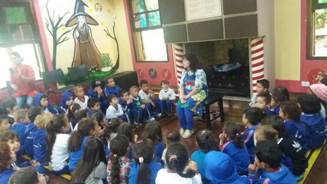 As professoras da Educação Infantil e 1º ano, juntamente com a professora de Literatura programaram para as aulas, um momento de encantamento. Para tanto, o projeto inclui grandes clássicos da literatura. Iniciamos com o famoso João e Maria, nesse processo de contação de história, a professora confeccionou um avental no qual seus personagens ficavam dentro do bolso e conforme o desenrolar da história, iam sendo fixados no avental, foi muito divertido.