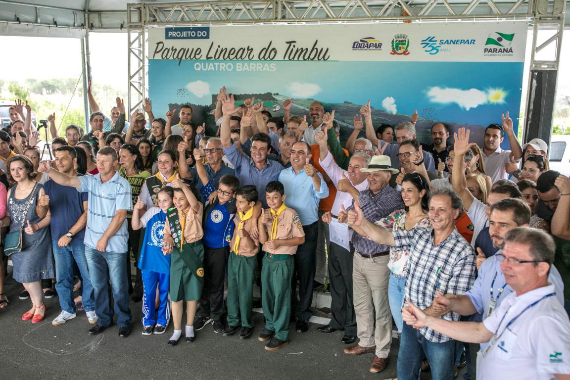 A Prefeitura de Quatro Barras, a Sanepar e a Codapar lançaram nesta terça-feira (6) o Projeto do Parque Linear do Timbú – um complexo que busca a recuperação da qualidade hídrica do rio e ao mesmo tempo prevê uma ampla estrutura com áreas de caminhada, pedalada, espaços de lazer e esportes, e uma arena aberta multiuso para a promoção de atividades culturais e, principalmente, educativas.