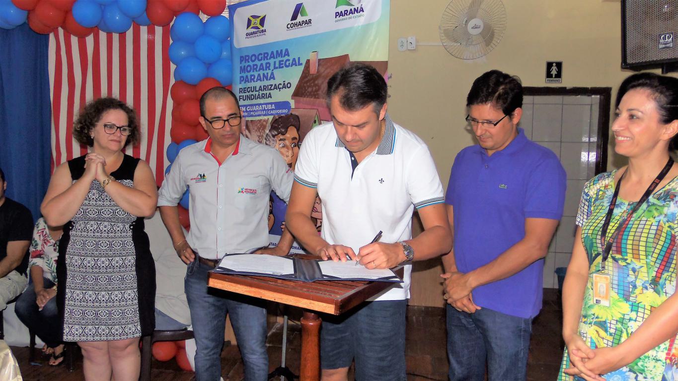 O sábado (28) foi especial para 165 famílias do bairro Mirim em Guaratuba litoral do Paraná, que receberam dos representantes da Cohapar e da prefeitura os documentos preliminares para a regularização dos imóveis. As famílias aguardavam há décadas pelo reconhecimento de propriedade e foram beneficiadas por uma ação conjunta dos órgãos dentro do programa Morar Legal Paraná. A iniciativa envolve investimentos de mais de R$ 1 milhão em recursos do Fundo Estadual de Combate à Pobreza, criado pelo Governo do Estado e administrado pela Companhia de Habitação do Paraná (Cohapar).