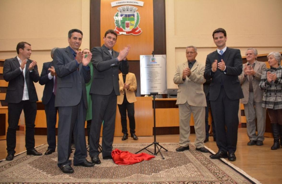 QUATRO BARRAS – Na terça-feira, 22, em sessão solene na Câmara de vereadores o neto do ex-governador Paulo Cruz Pimentel, atual vice-prefeito de Curitiba, Eduardo Pimentel, recebeu em nome do avô o título de Cidadão Honorário de Quatro Barras.