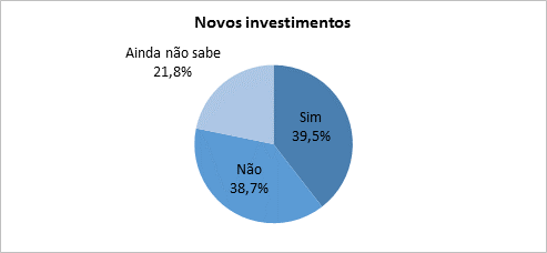 Os investimentos também devem ser ampliados. Conforme o estudo, 39,5% das empresas pretendem investir em seus negócios neste semestre, contra 26,9% na edição anterior. As principais áreas beneficiadas devem ser reforma e modernização das instalações (22,8%), capacitação da equipe (16,6%) e publicidade (15,8%). Aperfeiçoar a área de informática (11,3%), investir em nova linha de produtos (10,2%), e novos pontos de venda (9,8%) também devem ser alvo de investimentos. (Fonte: Fecomércio PR)