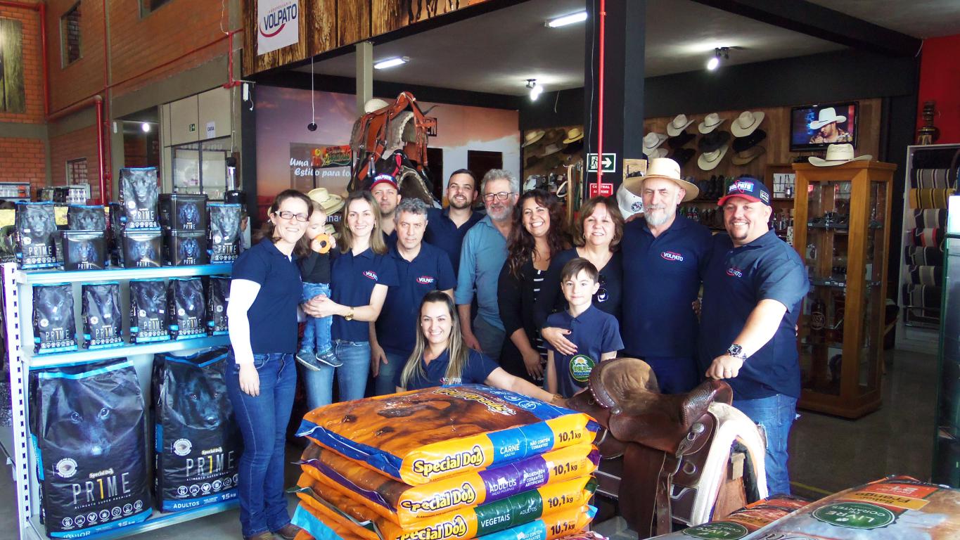 A Volpato Agropecuária recebeu clientes e amigos no sábado (13) para a reinauguração da loja em Quatro Barras. No ano que completa 35 anos, a empresa passa a contar com maior oferta de produtos para atender aos clientes de toda região. A Volpato conta com uma completa linha de rações para animais de pequeno e grande porte, medicamentos, linha Pet Shops, uma loja completa com roupas e acessórios e muito mais.