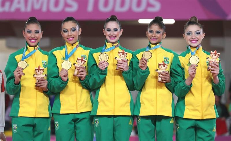 O conjunto brasileiro voltou a subir ao pódio no domingo (4/8) ao conquistar mais um bronze, desta vez na prova das 5 bolas. O Brasil teve 22.500 pontos, o México terminou com o ouro (24.400) e o Estados Unidos com a prata (24.100).