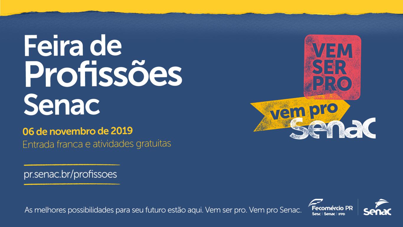 Na próxima quarta-feira (6) o Senac PR realiza mais uma edição da Feira de Profissões em todo o estado. Além das atividades gratuitas, esse ano o evento apresenta uma novidade, o Espaço Pro, local destinados para a oferta de vagas de emprego: serão 2500 vagas disponíveis nas 31 unidades participantes.