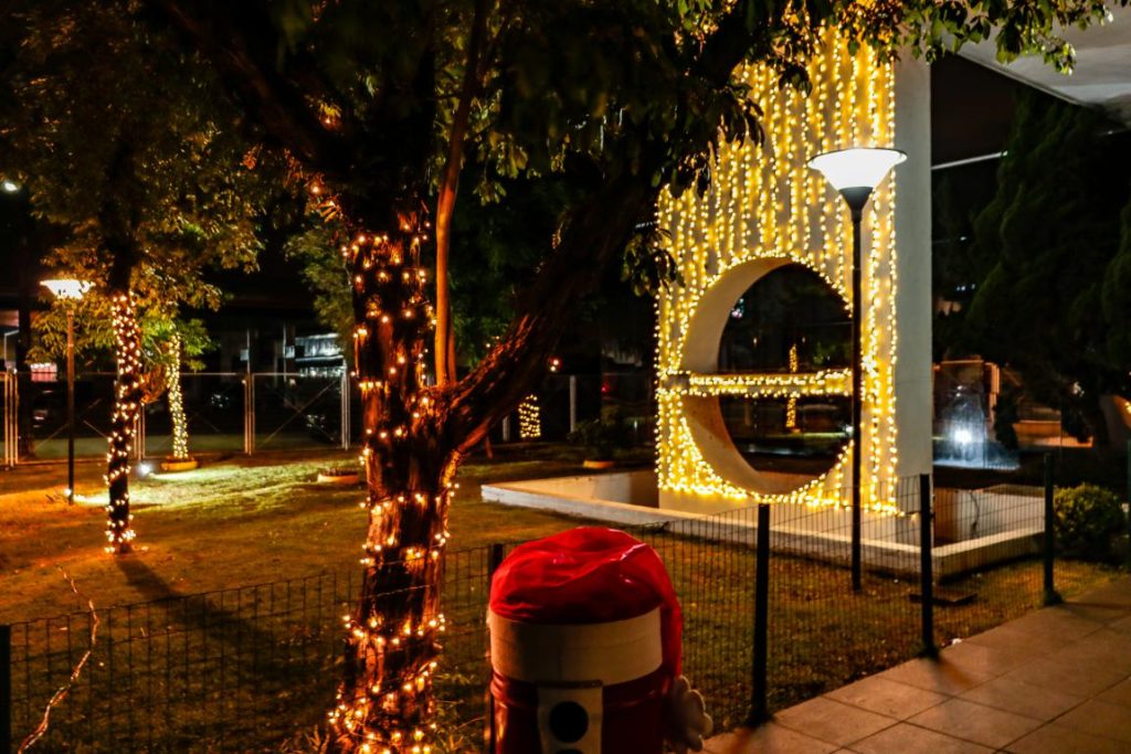 A nova sede da Prefeitura, que em outubro estava iluminada com a cor rosa, e em novembro de azul, em alusão às cores das campanhas de saúde desses meses, em dezembro recebe as cores verde e vermelha. A Secretaria Municipal de Educação é outro espaço público que recebeu uma super decoração e também tem seu túnel de luz.