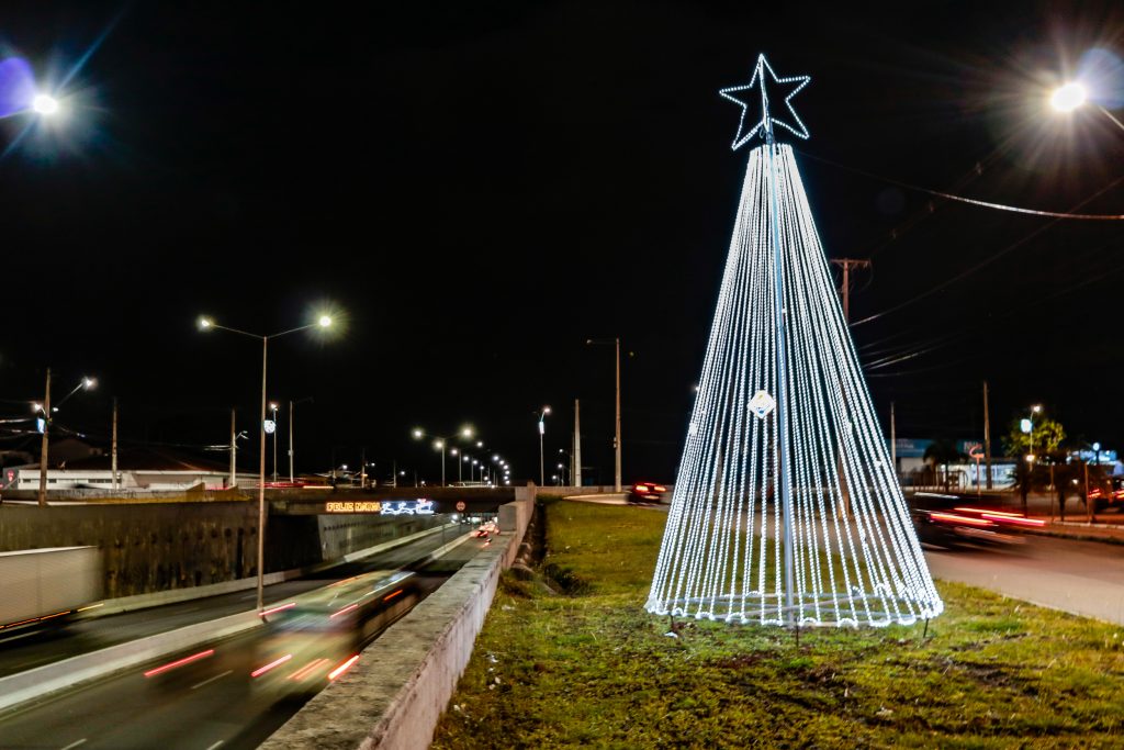 “Colocamos as luzes decorativas nos locais públicos da nossa cidade para trazer à nossa população um natal mais colorido e iluminado. Que estas luzes tragam mais esperança e nos fortaleçam na busca por dias melhores agora que, aos poucos, estamos voltando à normalidade após meses de pandemia”, explica a prefeita de Pinhais, Marli Paulino. (Foto: Roberto Dziura Jr/ACPMP)