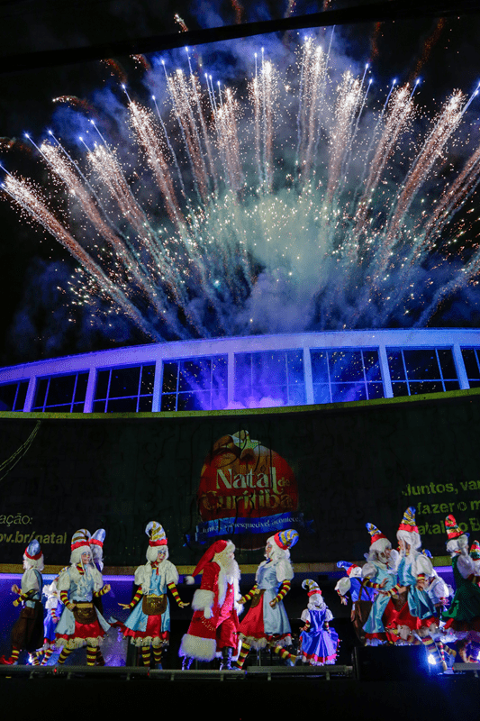 Com realização da Prefeitura de Curitiba, o Natal de Curitiba 2025 é apresentado pelo Bradesco e também tem como patrocinadores: Governo do Paraná, Ademicon, Condor Super Center, O Boticário, Rumo, Grupo Potencial, Ligga, Uninter, Electrolux, Volvo do Brasil, PUCPR/Grupo Marista, Família Madalosso, Consórcio Servopa, MiniPreço, Tenda, Favretto, Abrasel-PR, Super Muffato, Valor Real Construtora, Realiza Eventos e Festtone. A programação ocorre de 24 de novembro a 6 de janeiro, com apresentações até 23 de dezembro. Foto: Pedro Ribas/SECOM