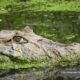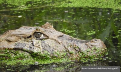 Moradores do bairro Porto Seguro, em Paranaguá, no Litoral do Estado, convivem com um jacaré-de-papo-amarelo que surgiu há duas semanas no Rio da Vila, afluente do...